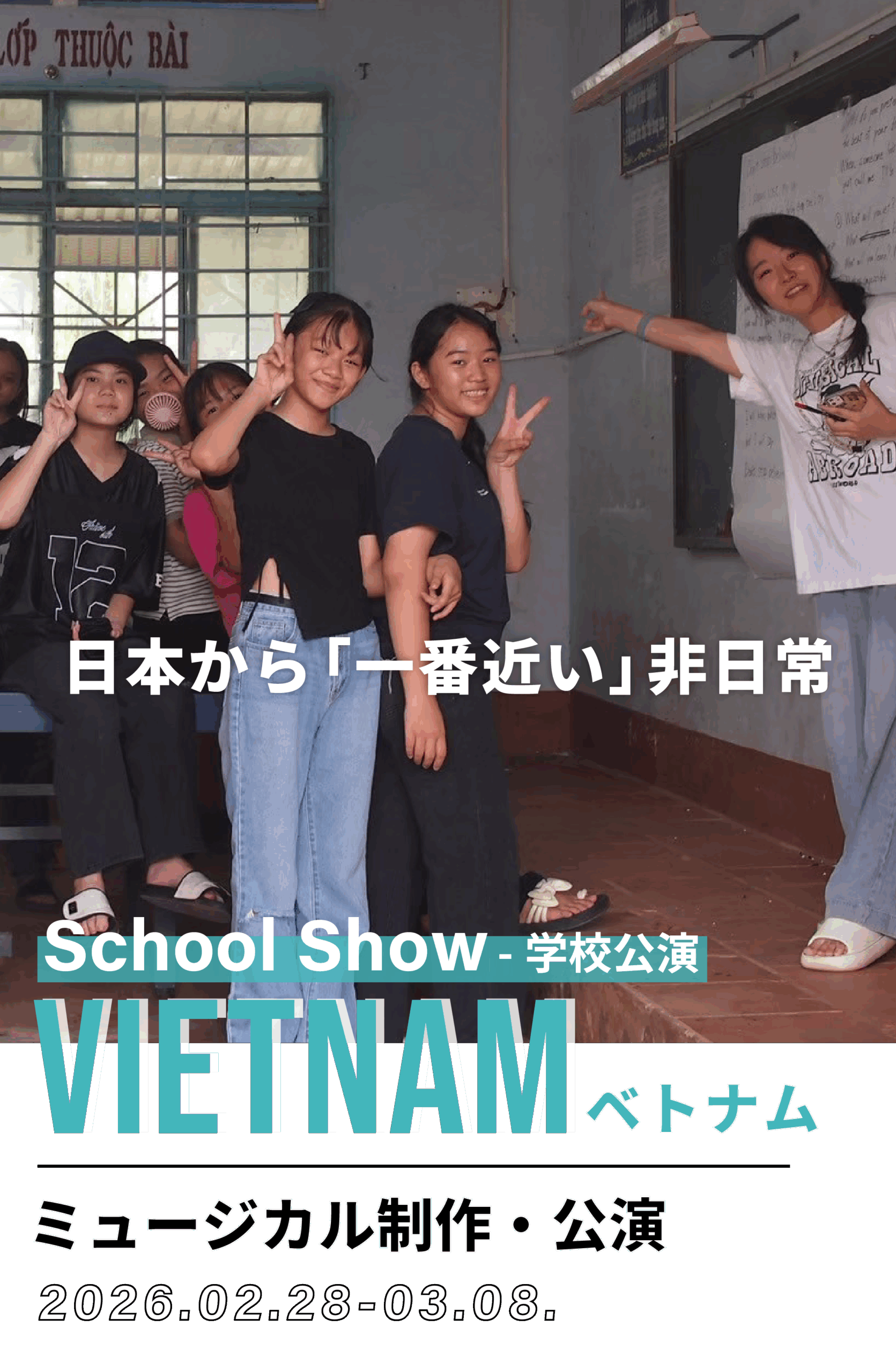 今回はベトナムにある学校にお邪魔して、学校でのステージ公演を行います。